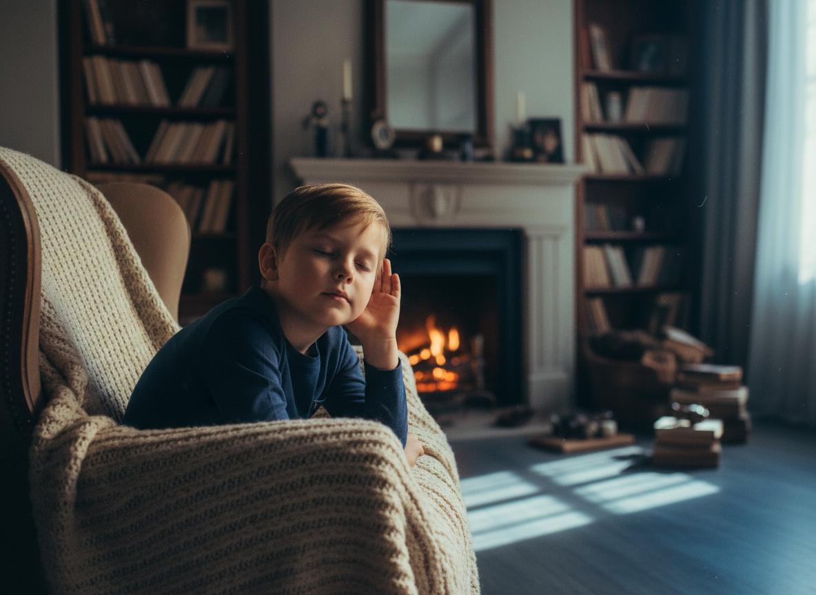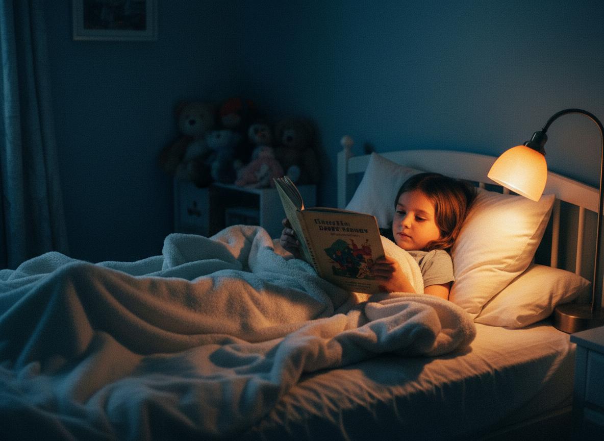 Gentle visuals, wind‑down pacing, and a screen that dims as they drift off.